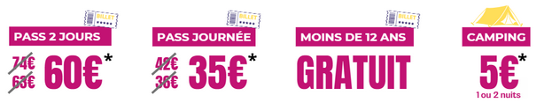 L’accès au camping du festival est strictement réservé aux détenteurs d’un billet festival. Les places sont limitées. Les camping-cars, camions aménagés et caravanes ne sont pas concernés.
