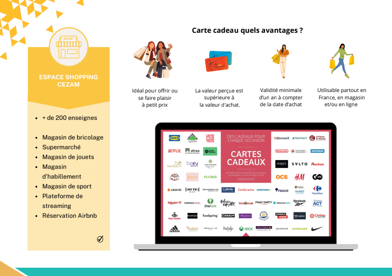 – sur présentation de la carte en caisse et aux guichets des partenaires Cezam