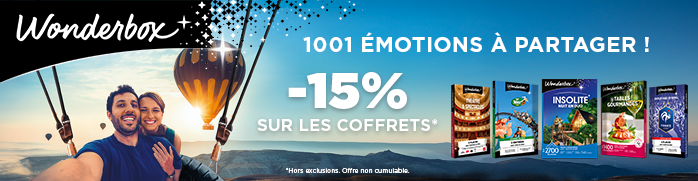 Pour bénéficier de votre remise exclusive de 15%, cliquez sur le lien suivant : https://collectivite.wonderbox.fr/promotion/code/405b0cd2c81d4e05ea2523c95e1b2704